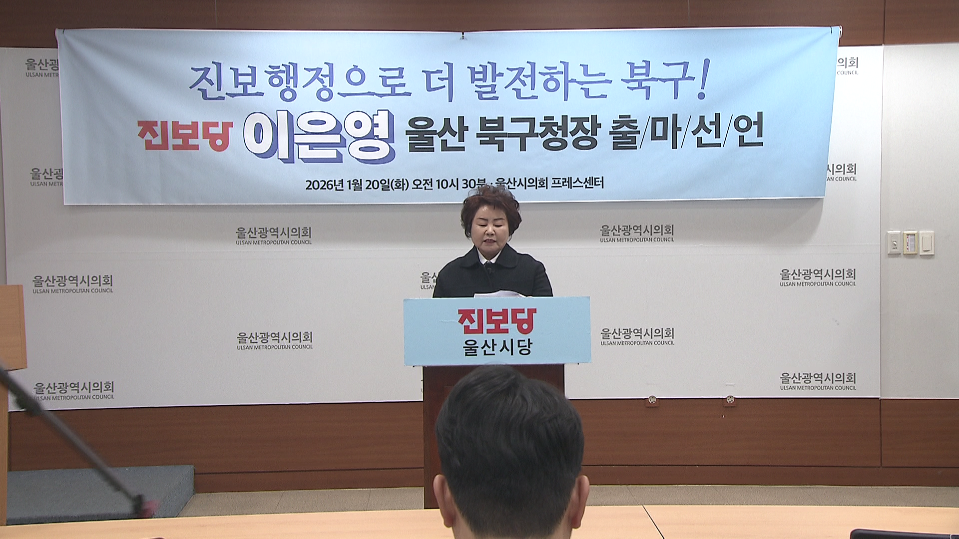 진보당 이은영 전 시의원이 오늘(1/20) 시의회프레스센터에서 기자회견을 갖고 6.3지방선거 울산 북구청장 선거에 ...